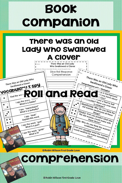 Are you looking for a quick printable with comprehension questions, games, vocabulary, grammar, fluency, phonics, comprehension strategies, sequencing, writing, and a comprehension test to go with There was an Old Lady Who Swallowed a Clover These Comprehension activities are ready to go, will save you time, and great to help you in guided reading, small group, whole group, or homeschool! There was an Old Lady Who Swallowed a Clover was written by Lucille Colandro and and must be purchased separately.